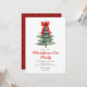 Weihnachtsabend Party Einladung mit Weihnachtsbaum und rotem Bogen.