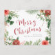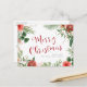 Diese schöne Ferienpostkarte besticht durch elegante Aquarellfarben-rote Blume mit Grün auf weißem Hintergrund und Fröhliche Weihnachten in rotem Text.