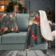 Ein Weihnachtswinterdesign mit dunkelgrünem Waldwald im Winter mit schimmernden Goldschneeflocken, Poinsettias, glühenden Laternen, Kiefernzapfen und roten Beeren mit einem roten Ball-Ornament auf einem roten Band, das auf eine warme und gemütliche Sherpa-Decke fällt, macht es zu einer großartigen Urlaubsgeschenkidee.