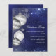 Für ein Weihnachtsfest mit Familie und Freunden. Ein marineblau blauer Hintergrund, die blaue Farbe ist ungleichmäßig. Mit Imitaten dekoriert, silberfarben. Personalisieren und fügen Sie die Details hinzu. 1 Blatt = 1 Einladung mit Druckkante bis Kante.