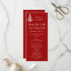 Weihnachtsfeiertage Rote Vertikale Hochzeitsprogramme mit einem extravaganten Weihnachtsbaum-Design in der oberen Ecke. Dies ist ein 4" x 9" vertikales zweiseitiges Hochzeitsprogramm. Benutzen Sie einfach die Vorlagenfelder, um Ihre eigenen Details zur Hochzeitsfeier hinzuzufügen, oder benutzen Sie die Schaltfläche "Anpassen", um Textzeilen hinzuzufügen oder zu löschen oder Dinge zu verschieben. Diese sind ideal für Hochzeiten auf dem Lande während der Ferienzeit. Weihnachtsbaumhochzeiten, Winterhochzeiten, Hochzeitsprogramme für Dezember, Hochzeitsprogramme für Rote Hochzeiten, Hochzeitsprogramm für Feiertage, Hochzeitsprogramm für Weihnachten, günstige Hochzeitsprogramme, Hochzeitsprogramme