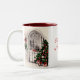 Weihnachten Tasse mit einer Vintagen Szene eines Weihnachtsbaumes vor einem Fenster, das nachts von Kerzenlicht erhellt wird. Personalisieren Sie Text, mehr Größen und Farben verfügbar!