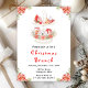 Diese elegante und festliche Brunch-Einladung bietet einen Kuchenstand mit Lebkuchen, Makaronen, Süßigkeiten, heißem Kakao und einem Teekessel. In den Ecken sind schöne rote Poinsettia Blume. Der Text kombiniert handgeschriebene Skripte mit serifenlosen Schriftart für ein stilvolles und modernes Design. Dies ist ideal für einen Weihnachtsbrunch oder ein Tee-Party.