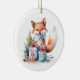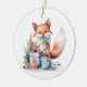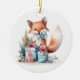 Dieser bezaubernde Weihnachtsschmuck zeigt ein Aquarellbild eines niedlichen Fuchses mit seinen Weihnachtsgeschenken auf der einen Seite, dem Ort, an dem Sie es auf der anderen Seite personalisieren können.