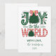 Ein fröhliches festliches Design mit festlicher Typografie mit Karo-, Stechpalmen- und Kieferndetails, die „JOY to the WORLD“ buchstabieren. Perfekt für Weihnachtsfeiern, Familientreffen oder festliche Veranstaltungen. Diese fröhliche Einladung fängt die Wärme und den Geist der Festtagssaison auf zeitlose, moderne Weise ein.