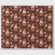 Unser schmuckloses Weihnachtskuchen Keksbrot Cupcake Wrapping Paper enthält Aquarellabbildungen von Schokoladenkuchen mit Zuckerguss aus rotem und weißem Streifen, überzogen mit Gingerbrot-Keks-Weihnachtsbaum und umgeben von roten und weißen Pfefferminzbonbons auf dunkelschokoladenbraunem Hintergrund.
