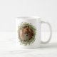 Eine hübsche Aquarellillustrierung eines bezaubernden Spitz-Hundes mit rotem Schal und Hut im Hintergrund von Weihnachtsgrün. Personalisieren Sie die Rückseite mit dem Foto Ihres Haustieres.