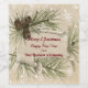 Alte Viktorianische Weihnachtskarte mit Kiefernzapfen, Kiefern und Schneeflocken auf einer Vintagen rustikalen Scroll.