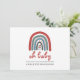 Eine niedliche skurrile Weihnachtsboutique Wasserfarbe Regenbogen Baby Dusche Einladung. Ein perfektes Thema für eine Babydusche mit einem nahen Urlaubsdatum.