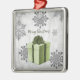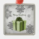 Dekorieren Sie Ihren Weihnachtsbaum in dieser Weihnachtszeit mit einem grünen Weihnachtsgeschenk Weihnachtsgeschenk-Ornament. Im Ornament-Design erwartet Sie ein lebendiges, verpacktes Weihnachtsgeschenk, das mit grauen und weißen Schneeflocken auf grauem Grunge-Hintergrund geschmückt ist. Mit diesem Design sind auch zusätzliche Geschenk- und Urlaubsartikel erhältlich.