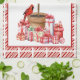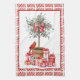 Festliches Küchentuch mit einem bunten Weihnachtsgeschenk mit einem Kardinal und Weihnachtsgeschenke am Fuß.