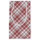 Diese Weihnachtsgeschenktüte wird in einem karierten silbernen und roten Druck gezeigt. Kleine Größe angezeigt Glossage abgebildete Archivbild freepik.com vecteezy.com