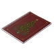 Dieses elegante Design besticht durch einen gesteppten Weihnachtsbaum mit schmuckfarbenen Ornamenten, die darunter geschmückt sind und von einer zarten goldenen filigranen Grenze mit Juwelen an den Ecken umgeben sind.