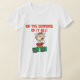 Ein bunter und bezaubernder Weihnachtsurlaub Design-T - Shirt und andere Urlaubsbekleidung mit einem kleinen Strichmännchen mit einem großen Geschenk und einem roten Text, der lautet "Oh, The Suspense Of It All!".
