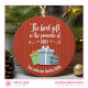 Ring in der Ferienzeit mit diesem niedlichen Ornament mit Weihnachtsgeschenke verbunden mit Bögen auf einem rot-weiß gestreiften Hintergrund, Typografie, die sagt: "Das beste Geschenk ist die Anwesenheit der Familie", und ein personalisierbarer Name und Datum. Dieses Design ist modern und minimalistisch, und es wird für alle Altersgruppen attraktiv sein. Ändern Sie den Namen und das Datum, um Ihren Bedürfnissen gerecht zu werden.