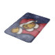 Ein niedlicher Lebkuchenjunge, der wie der Weihnachtsmann gekleidet ist, schmückt diese stilvolle Weihnachtsbadematte. Das Design stammt aus der Originalkunst.