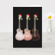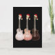 Coole rustikale, Vintage Retro-E-Gitarre Weihnachtskarte für Musikliebhaber vor allem Teenager. Festive Retro rustikale Kunstzeichnungen von drei Gitarren in durchsichtigem ätherischen Braun mit lustigen Weihnachtsmannmützen von Künstlerin Catherine Sweetman
