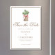 Diese winterliche Weihnachtsfeier Save the Date eine nostalgische Weihnachtsglocke, die in einem festlichen roten Bogen unter grünen Kiefern-Blätter eingewickelt ist. Elegante kursive Schrift in altbrauner Typografie für eine traditionelle Braut und Bräutigam im Winter.