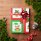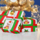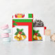 Weihnachtsglocken, Poinsettia, Elfe auf grün und r Geschenkpapier
