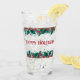Dieses Weihnachtsgetränk hat zwei Weihnachtsgrenzen mit den Worten "Frohe Weihnachten" zwischen den Grenzen. Der Text auf dem Glas ist anpassbar, sodass Sie ihn in Ihren eigenen Text ändern oder verlassen können.