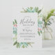 Diese weihnachtliche Gratiskarte für den Feiertag ist perfekt für ein einfaches Urlaubserlebnis. Das Winterurlaubsdesign besticht durch sanfte, grüne Aquarellnuancen und moderne Botanicals mit Sprigs klassischer roter Heiligbeeren.