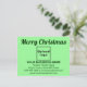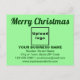 Frohe Weihnachten! Einer der bekanntesten Feiertage des Jahres. Es ist auch eine der besten Jahreszeiten, um Ihr Unternehmen zu werben oder Ihren Markennamen für Kunden oder Kunden zu fördern. Postcard Karte, die Sie anpassen können, um Ihre geschäftliche Marke und mit Weihnachten Gruß. Passen Sie es an und nutzen Sie es, um Ihre Kunden oder Kunden zu Weihnachten zu begrüßen und als Marketing-Material, um Ihr Unternehmen zu werben oder Ihren Markennamen zu fördern. Anpassbare Postkarte, mit der Sie Markenbewusstsein schaffen können. Designfarben sind dunkelgrüne Texte auf hellgrünem Hintergrund. Um diese Postkarte anzupassen, laden Sie Ihr Firmenlogo hoch, geben Sie Ihren Firmennamen, Ihre Adresse, Telefonnummer, E-Mail und Website oder Ihre Social Media-Seite ein. Bitte Karo des Erscheinungsbildes nach dem Hochladen von Logos und Schriftzeichen. Wenn Ihnen das Aussehen gefällt, können Sie jetzt Ihre Bestellung aufgeben. Wenn Sie das Logo und die Texte ändern und verschieben müssen, um auf diese Postkarte zu passen, ändern Sie bitte das Design-Tool. Sie können auch die Hintergrundfarbe, die Farbe des Schriftartes und den Stil des Schriftartes im Designwerkzeug ändern. Sie können auch Bilder und Texte auf der Rückseite dieser Postkarte im Designwerkzeug hinzufügen. Frohe Weihnachten! Wir wünschen Ihnen mehr Umsatz in diesem Urlaub.