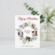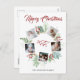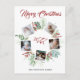 Ein festliches Postkartendesign, das fünf Ihrer Lieblings-Fotos auf einem runden, grün-farbenen Kranz mit roten Beeren auf einem schneeweißen Hintergrund präsentiert. Ein Jahr erscheint in der Mitte in handgeschriebenem Pinselskript. Und oben steht "Frohe Weihnachten", die auch für"Happy Holidays" oder"Sommergrüße in derselben Vintagen Schrift in rot geändert werden können. Ihr Nachname in eleganter Typografie. Auf der Rückseite finden Sie Ihre benutzerdefinierte Nachricht. Personalisieren Sie dieses Vintage, elegante Collage Design des Fotos, indem Sie auf den Button "Personalisieren" klicken!