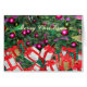 Weihnachtsgrüße, mit Baumschnitzen und Geschenken,Karten,Postkarten,Sticker,Autoaufkleber.