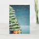 Weihnachtsgrüße mit Bäumen, Schnee und Geschenkpackung