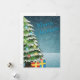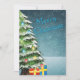 Weihnachtsgrüße mit Bäumen, Schnee und Geschenkpackung