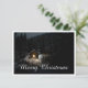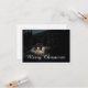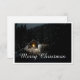 Die Karte zeigt eine stimmungsvolle, winterliche Szene mit einer kleinen, beleuchteten Holzhütte inmitten eines schneebedeckten Waldes. Die warme Lichtquelle im Inneren schafft einen schönen Kontrast zur dunklen, friedlichen Umgebung. Die elegante weiße "Frohe Weihnachten" verleiht dem Motiv eine festliche Touch. 🎄 ✨