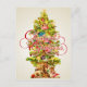 Wunderschöne Weihnachtsbaumillustrierung mit Spielzeug und Dekorationen. Die Rückseite hat das Aussehen einer Postkarte aus den 1890ern.