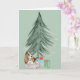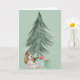 Niedlicher Beagle auf einem Weihnachtsgeschenk mit verschlungenen Lichtsaiten, Bonbonbons, Geschenken und einer Weihnachtsmannmütze auf grünem Hintergrund. Die Hintergrundfarbe kann geändert werden.