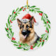 Weihnachtsbaumschmuck mit Wasserfarbe Deutscher Schäferhund und Aquarell Weihnachtskranz-Design. Fügen Sie dem Design den Namen der Hunde hinzu und es ist die perfekte Geschenkidee für den Hundeliebhaber, den Sie kennen, oder Sie selbst!