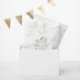 Die "Santa Baby" Duschtüte hat ein festliches, süßes Design, mit einem Baby in einer blauen Weihnachtsmannmütze mit weichen Wolken und Sternen. Es verwendet spielerische Rote Schrift- und Pastelltöne und schafft so ein gemütliches Urlaubsatmotiv, das perfekt für eine Babydusche im Winter geeignet ist.