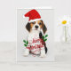 Adorable Beagle Welpe bereit für Weihnachten, mit seiner roten Weihnachtsmannmütze. Frohe Weihnachten!