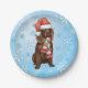 Feiern Sie die Urlaubssaison mit einem niedlichen Boykin Spanier, der eine Weihnachtsmannmütze und Schal trägt, inmitten einer Flut von Schneeflocken. Gute Ferien!