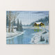 Weihnachtshütte an einem ruhigen Bach im Wald