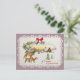 Mit dieser bezaubernden Weihnachtspostkarte im Vintagen Stil senden Sie uns herzliche Urlaubswünsche. Dieses nostalgische Design mit einer schneebedeckten Hüttenszene, gerahmt mit Spitzen-Details, einem roten Bogen und einer Hirschfamilie, erweckt den Zauber einer gemütlichen Wintersaison. Ideal, um Freunden und Familie feierlichen Beifall zu schenken oder für Sammler der Retro-Urlaubskunst.