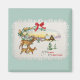 Mit diesem charmanten Weihnachtsmagneten im Vintagen Stil senden Sie herzliche Urlaubswünsche. Dieses nostalgische Design mit einer schneebedeckten Hüttenszene, gerahmt mit Spitzen-Details, einem roten Bogen und einer Hirschfamilie, erweckt den Zauber einer gemütlichen Wintersaison.