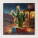 Weihnachtskaktus mit Geschenken vor einem Haus - PERSONALISIEREN
