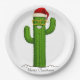 Weihnachtskaktus mit Weihnachtsmannmütze & Brille Pappteller