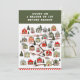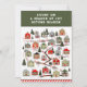 Einzigartige Weihnachtsgrüßkarte mit Weihnachtsabend-Aktivität mit 24 Miniaturhäusern, die zu einem Lebkuchenhaus führen.