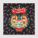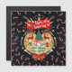 Das ist ein fröhliches Weihnachtsdesign mit spielerischen Elementen, Hirsch, Eule, Pinguin, Weihnachtsbaum, Mistletoe, Kuchen, Sternen, Geschenken, Bogen, einem großen goldenen Herz und einem besonderen Wunsch für ein glückliches Neues Jahr.