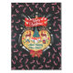 Das ist ein fröhliches Weihnachtsdesign mit spielerischen Elementen, Hirsch, Eule, Pinguin, Weihnachtsbaum, Mistletoe, Kuchen, Sternen, Geschenken, Bogen, einem großen goldenen Herz und einem besonderen Wunsch für ein glückliches Neues Jahr.