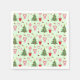 Diese niedliche Serviette ist vielseitig und kann für Geschenke oder Kunst- und Handwerksprojekte verwendet werden. Das Design umfasst Weihnachtsbäume, Süßspeisen, Süßigkeiten und Kuchen auf grünem Hintergrund.