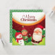 Ein helles und festliches Weihnachtsdesign mit Weihnachtsmann, Elf und Schneemann.
