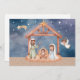 Weihnachtskartenillustrierung mit einer Krippe in Aquarellfarbe, mit Platz für eine persönliche Nachricht auf der Rückseite.