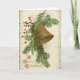 Ring in der Ferienzeit mit dieser schönen goldenen Weihnachtsglocke Vintage Illustration. An der Spitze dieser läufigen Glocke schmücken Evergreen Äste und rote Beeren. "Herrlichkeit für Gott in den Höchsten" wird auf der Glocke selbst graviert, und der rote und grüne Gruß lautet "Frohe Weihnachten".