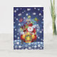 Weihnachten Weihnachtsmann mit Rentier fahren in einem festlich dekorierten alten klassischen Jahrgangswagen und liefert Geschenke und Geschenke auf einer Blue Snowy Night Background Grußkarte